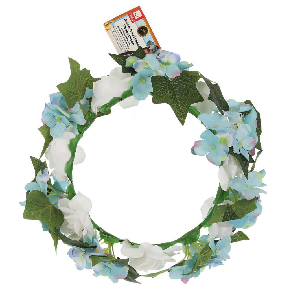 Viimeistele tyylisi tällä Oktoberfestin kukkaseppeleellä, joka korostaa asuasi valkoisilla ruusuilla, sinisillä kukilla ja vihreillä lehdillä. Se on täydellinen naamiaisasuste Oktoberfestiin, kun haluat erottua juhlahumussa.