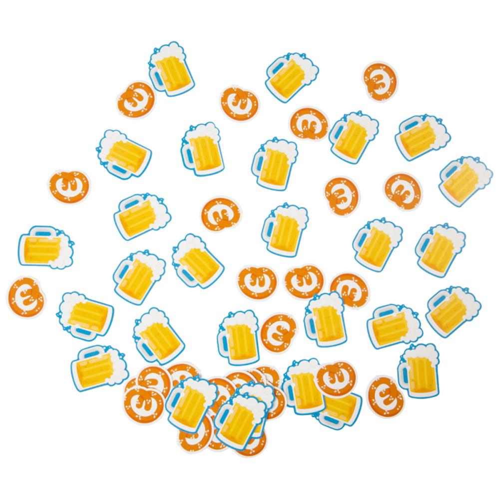 Oktoberfest Paperikonfetti 20-kpl sisältää pussin, jossa on kaksikymmentä paperista konfettipalaa, joista 10 esittää oluttuoppeja ja 10 pretzeleitä.