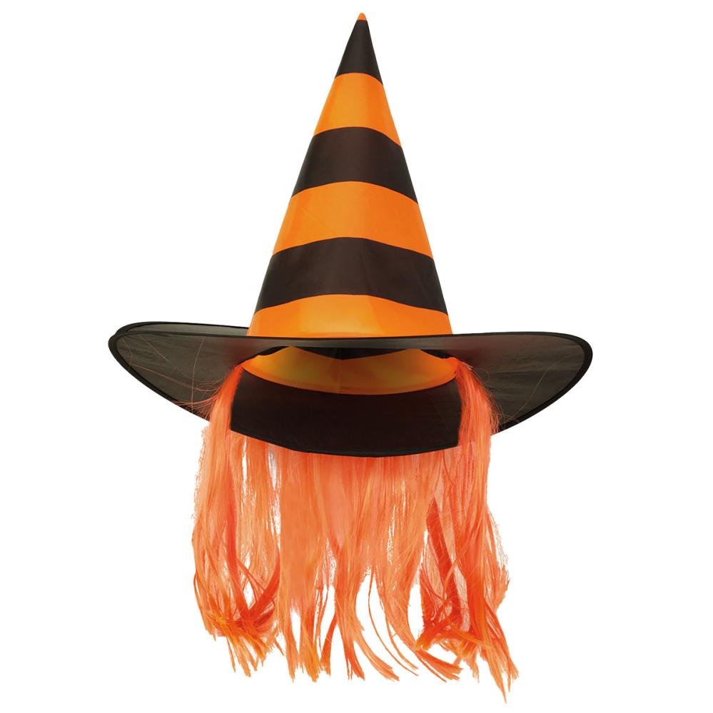 Erotu seuraavissa naamiaisissa tällä oranssiraidallisella hiuksilla varustetulla noitahatulla. Se on täydellinen hattu halloween-naamiaisiin lapsille, jotka haluavat loihtia tyyliä ja pukeutua karmivaksi noidaksi.