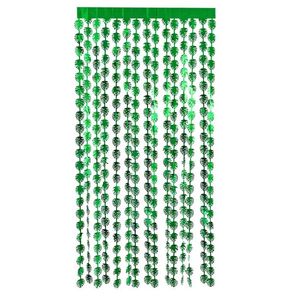 Oviverho Palmulehti Metallinen Vihreä sisältää oviverhon, jossa roikkuu metallinvihreitä palmulehtiä.