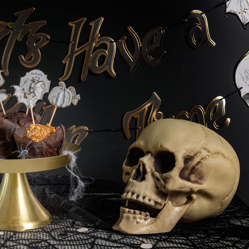 Luo tunnelmaa Halloweenin teemajuhlissa realistisella pääkallokoristeella. Tämä pelottava muovinen pääkallo on yksityiskohdiltaan vaikuttava ja luo karmivan vaikutelman vieraiden keskuudessa.