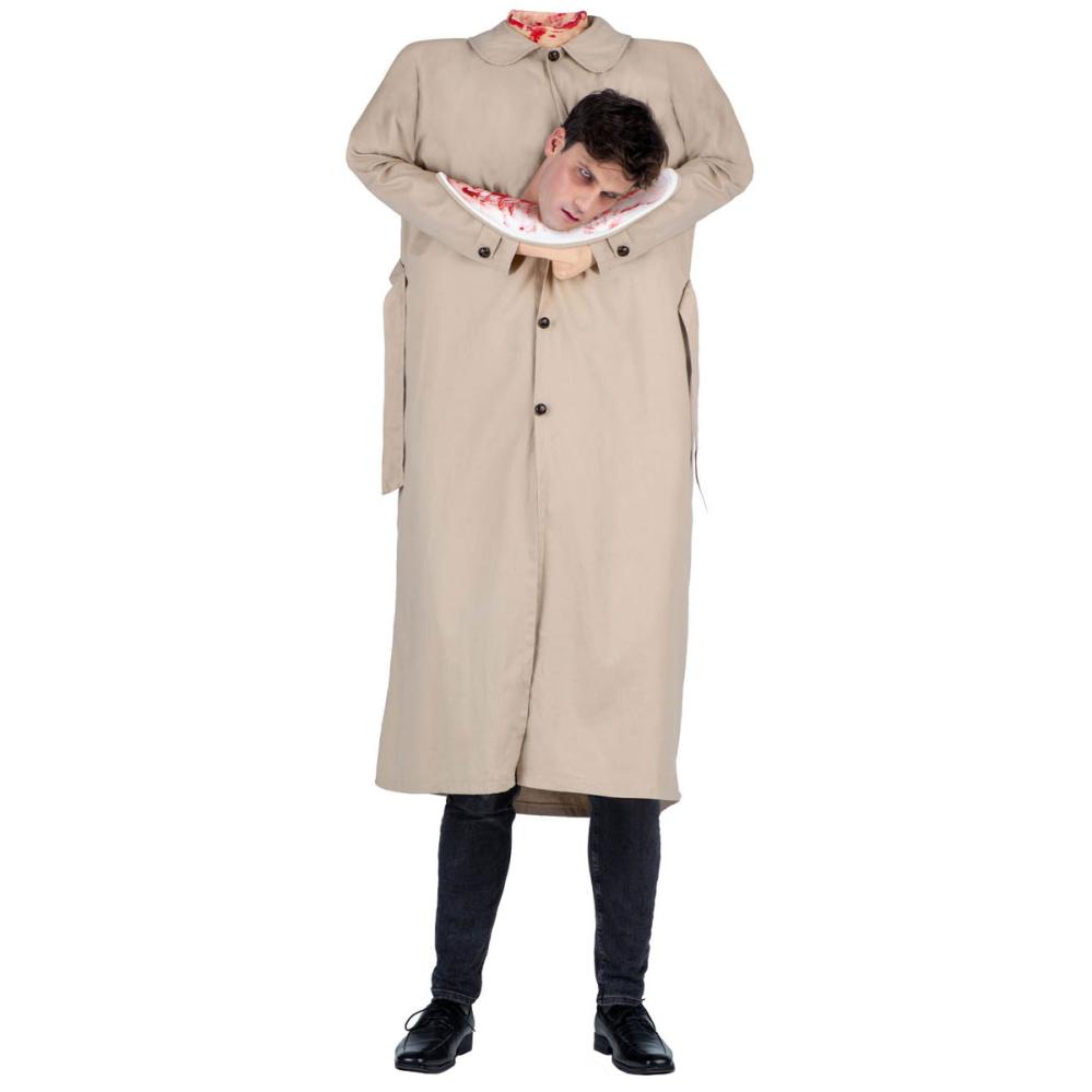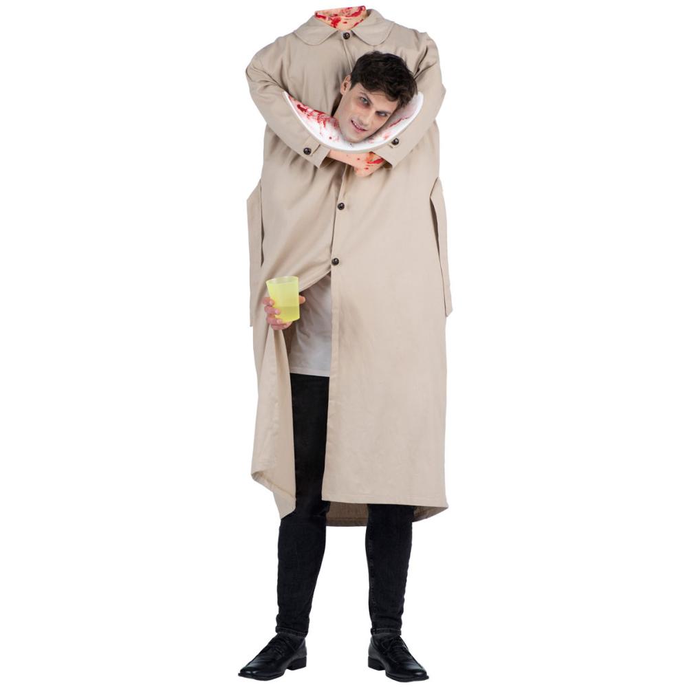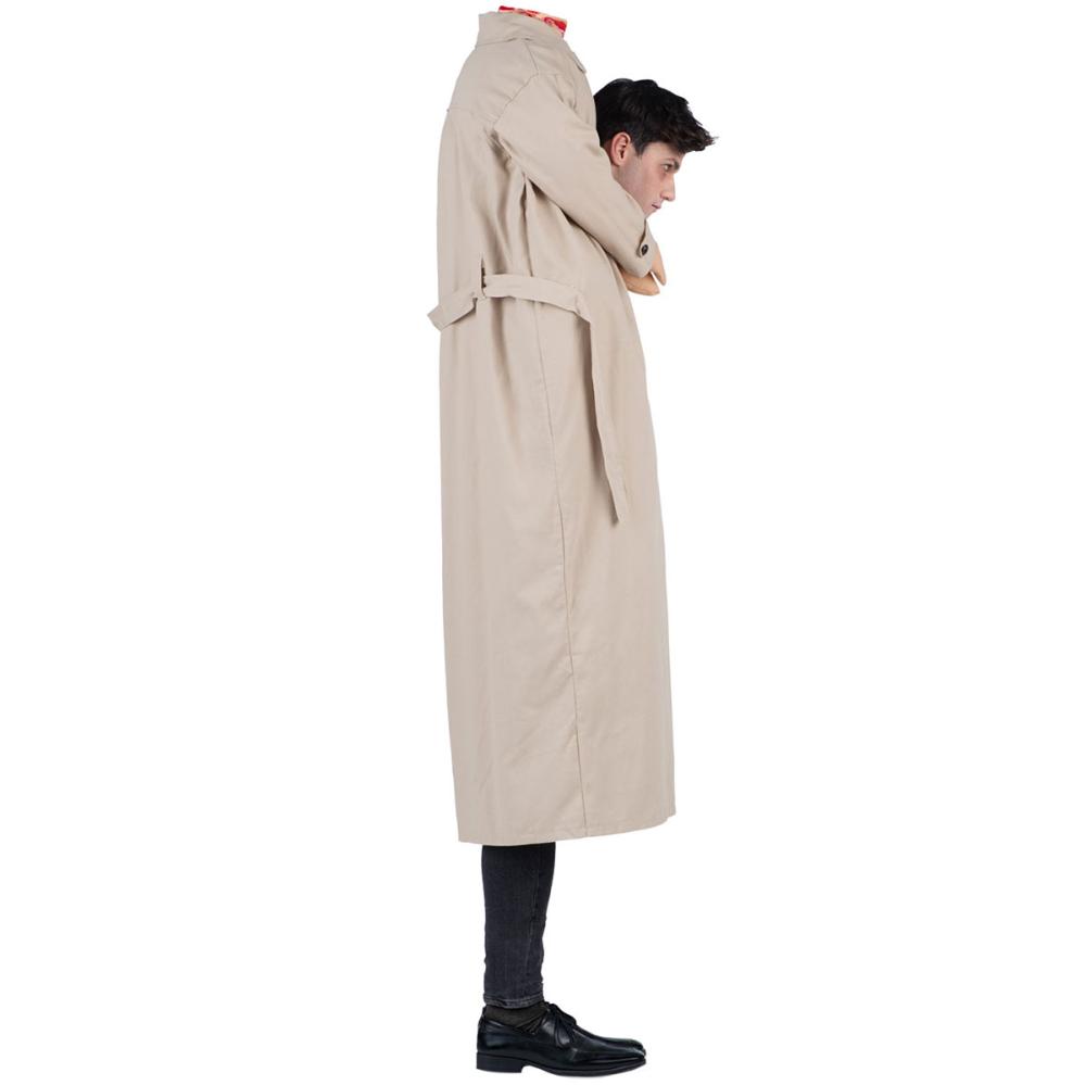 Päätön Mies Naamiaisasu sisältää beigen trenssitakin, joka luo illuusion siitä, että pidät omaa päätäsi sylissäsi. Mukana tulee myös ohjeet, joissa on askel askeleelta kuvat siitä, miten asu puetaan päälle.