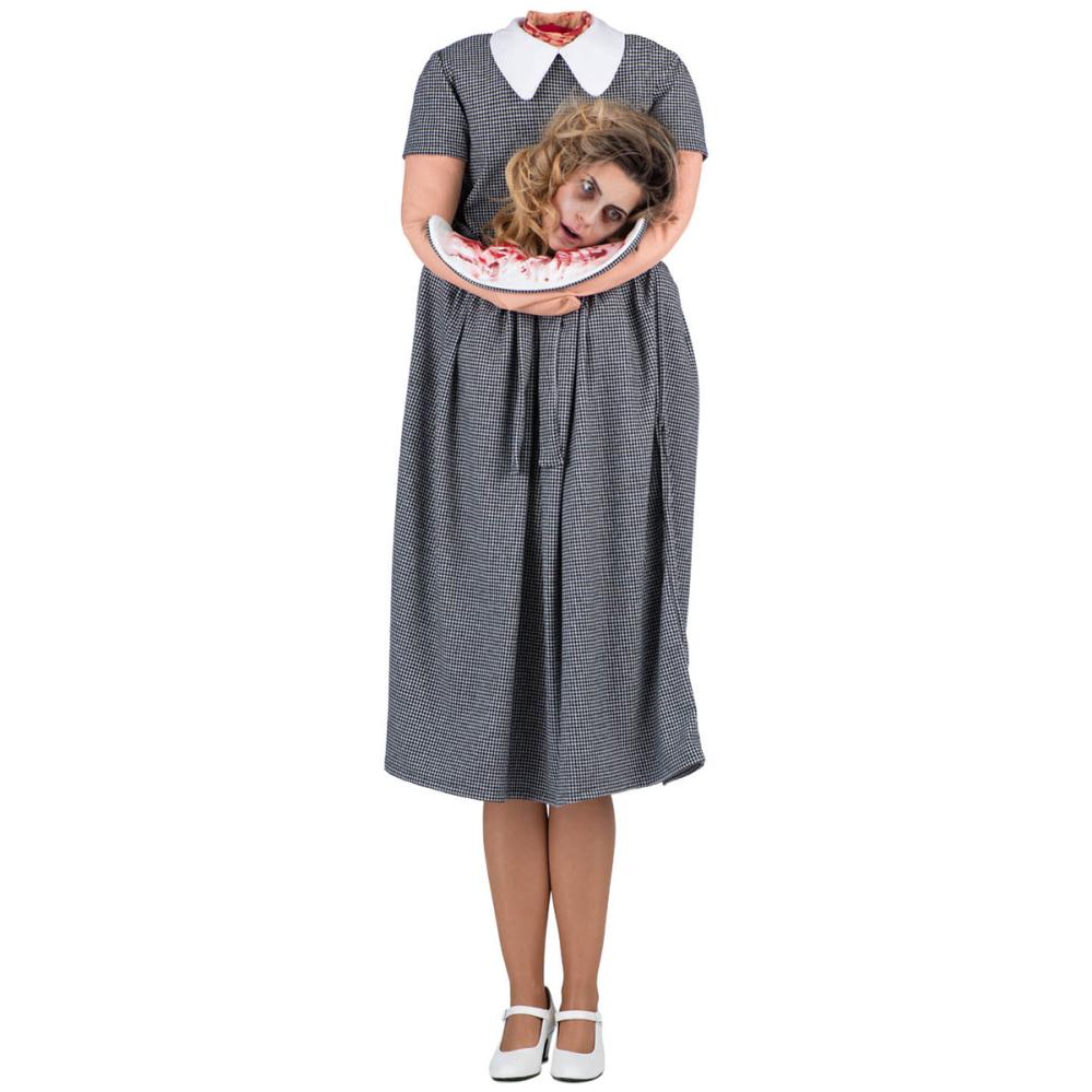Päätön Nainen Naamiaisasu sisältää musta- ja valkoruudullisen mekon, jossa on valkoinen kaulus, joka luo illuusion, että pidät omaa päätäsi sylissäsi. Mukana tulee myös ohjeet, joissa on vaiheittaiset kuvat siitä, miten asu puetaan.