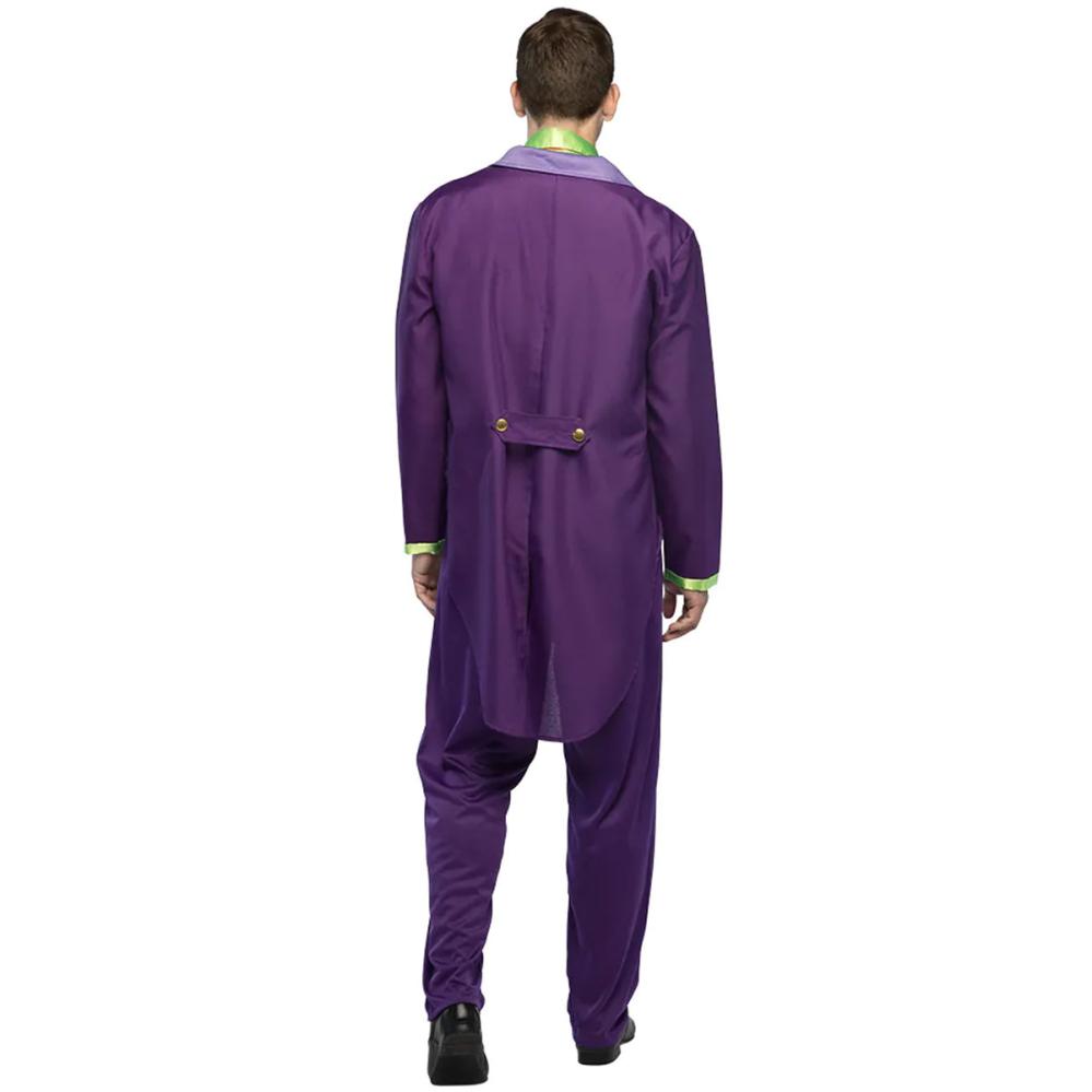 Paha Nero Naamiaisasu sisältää Jokerista inspiroidun naamiaisasun, jossa on punainen rusetti, vihreä kaulus, vihreä liivi, violetit housut ja yhteensopiva takki.