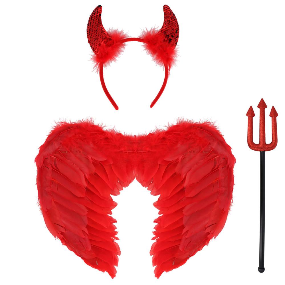 Paholaisen Asustesetti on punainen setti, joka sisältää höyheniset punaiset siivet punaisilla elastisilla nauhoilla, jotka kulkevat olkapäiden yli, punaisen kangaspäällysteisen diadeemin, jossa on punaiset paholaissarvet, jotka on koristeltu paljeteilla toiselta puolelta, sekä lyhyen kolmikärjen, jossa on musta varsi.