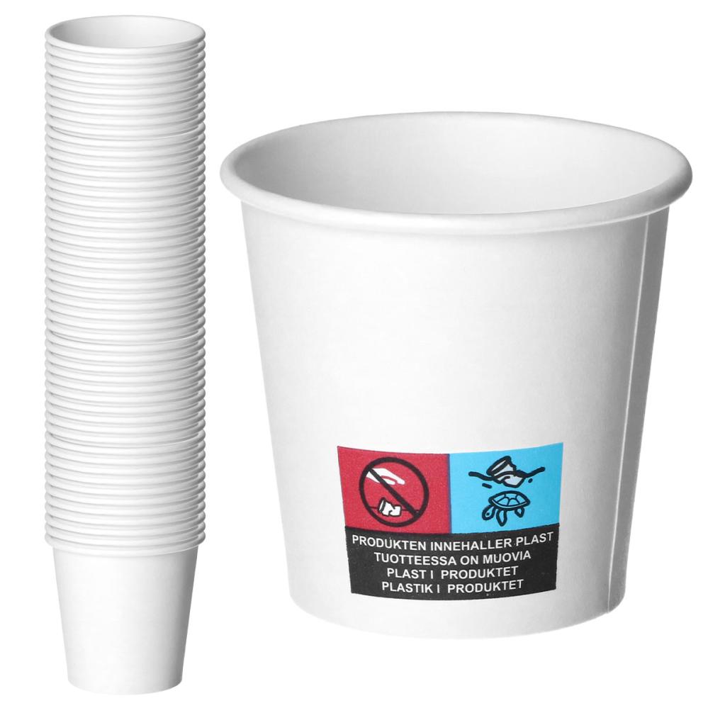 Tietoa tuotteesta Pahvimukit Valkoinen 12 cl 50-kpl: