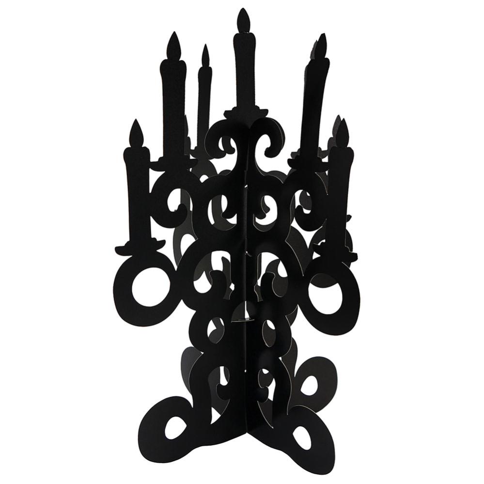 Luo tunnelmaa Halloweenina mustasta pahvista tehdyllä kynttilänjalka-pöytäkoristeella. Se on helppo koota ja täydellinen halloweenkoristeeksi, erityisesti hauskana yksityiskohtana Halloween-juhlatarvikkeidesi joukossa.