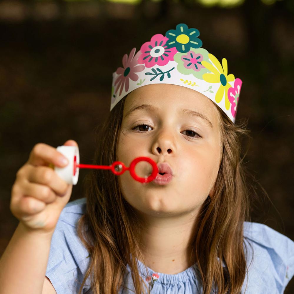 Lisää juhliin värikäs säväys näillä vaaleanpunaisilla, kukkakuvioiduilla paperikruunuilla. Ne ovat säädettävissä täydellisen istuvuuden takaamiseksi ja sopivat mainiosti juhlakruunuiksi kukkateemaisiin juhliin. Ne ovat juhlava lisä juhlatilpehööreihisi.
