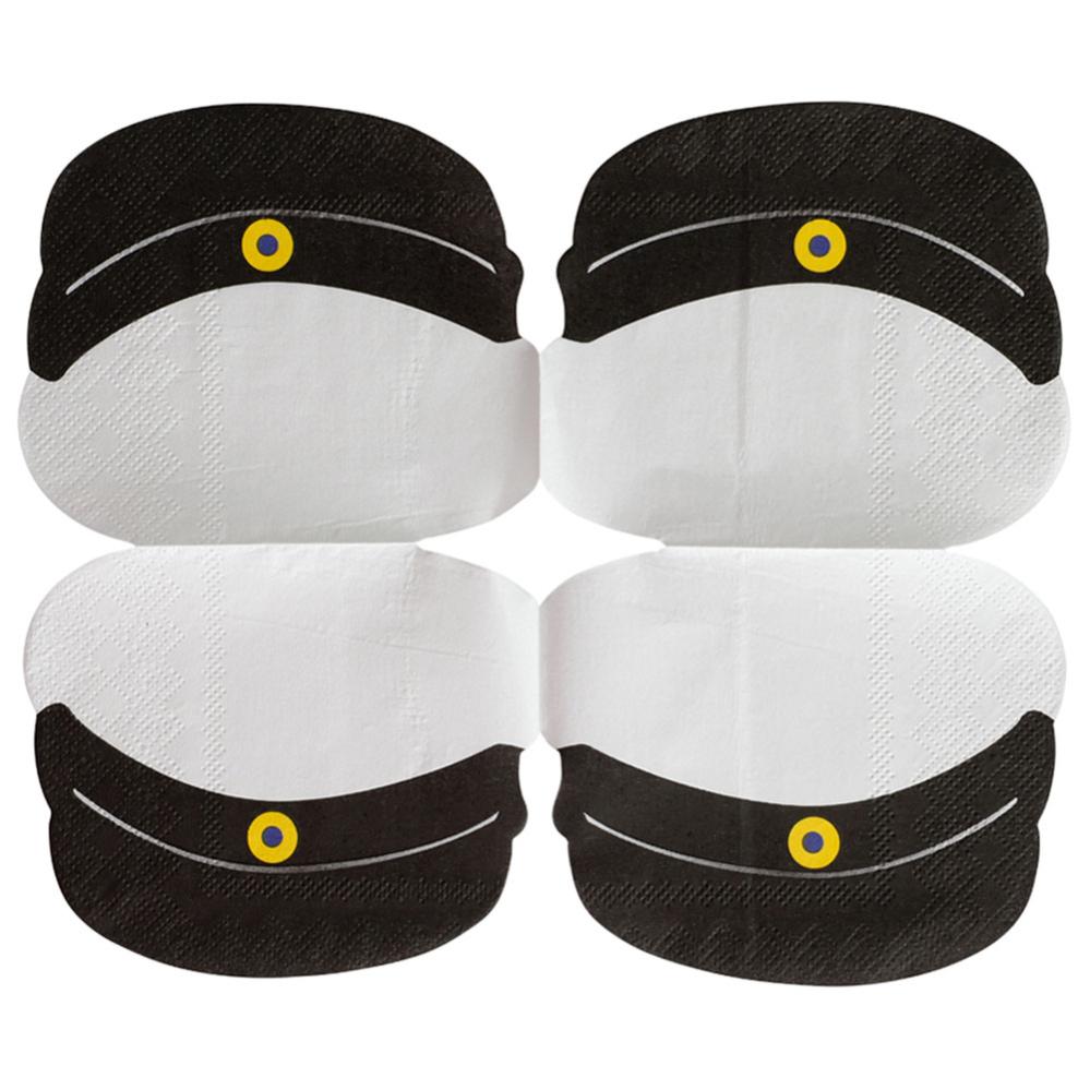 Paperiservetit Ylioppilaslakki 33 cm 16 kpl sisältää kuusitoista valkoista kertakäyttöservettiä, joissa on kolme kerrosta ja jotka on muotoiltu klassisiksi mustavalkoisiksi ylioppilaslakeiksi.