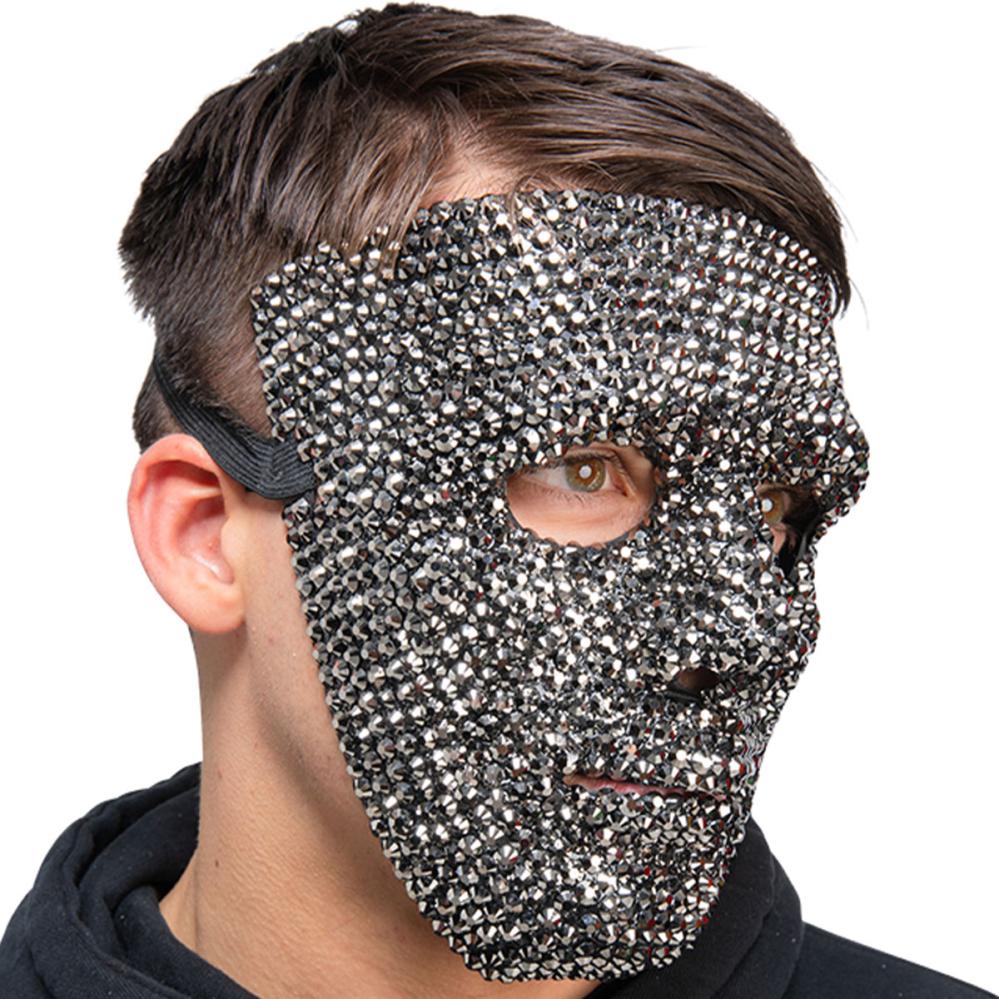 Ole juhlien keskipiste patsasnaamiolla, joka on peitetty kimmeltävillä metallinharmailla muovitimanteilla. Tämä strassinaamio antaa tyyliisi mystisen säväyksen ja sopii täydellisesti maskiksi naamiaisiin tai teemajuhlaan.