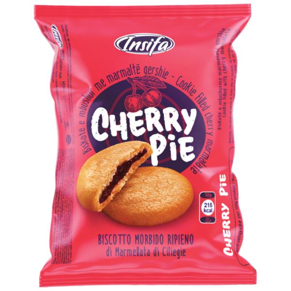 Pehmeä Pikkukakku Kirsikkamarmeladilla 50g koostuu pyöreästä, litteästä ja pehmeästä pikkukakusta, jossa on ihana kirsikkamarmeladitäyte.
