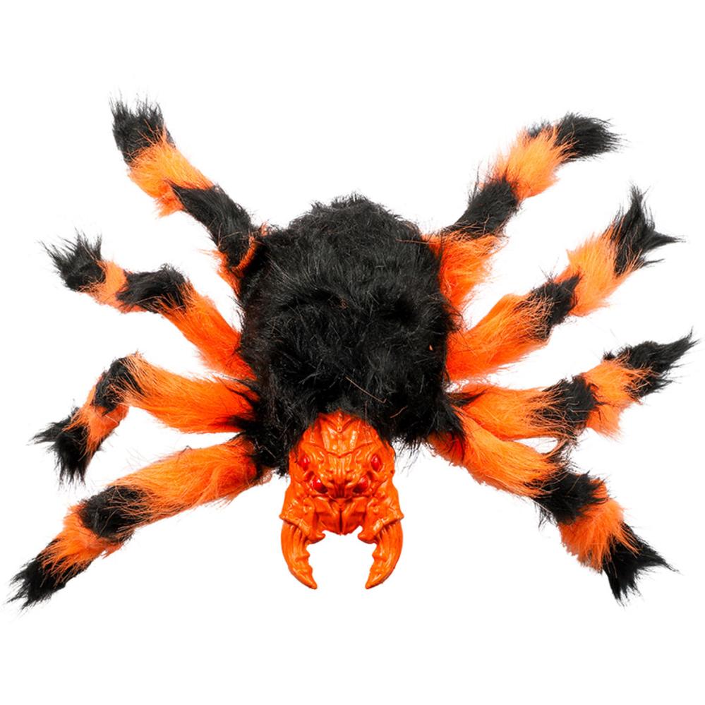 Pelottava Hämähäkki 45 cm on halloweenkoriste, joka esittää mustaa ja oranssia hämähäkkiä, jossa on taivuteltavat jalat.