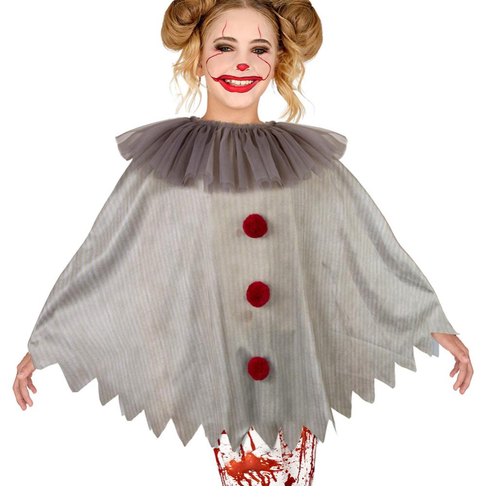 Etsitkö yksinkertaista pelleasua lapselle? Tutustu tähän mahtavaan pellepuvutukseen poncholla! Sekä yksinkertainen että tehokas pellepuku, joka sopii sekä halloweeniin että naamiaisiin. Täydellisen pelleasun saat yhdistämällä ponchon sopiviin sukkahousuihin ja pelottavaan pellemeikkiin.