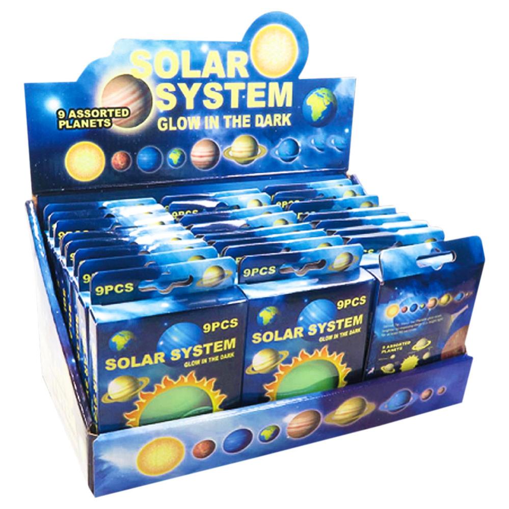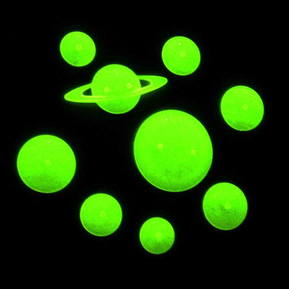 Pimeässä Loistavat Planeetat sisältää 12, erikokoista, pimeässä hohtavaa planeettaa. Planeetat ovat muovia ja ne kiinnitetään kattoon käyttäentarralappuja.