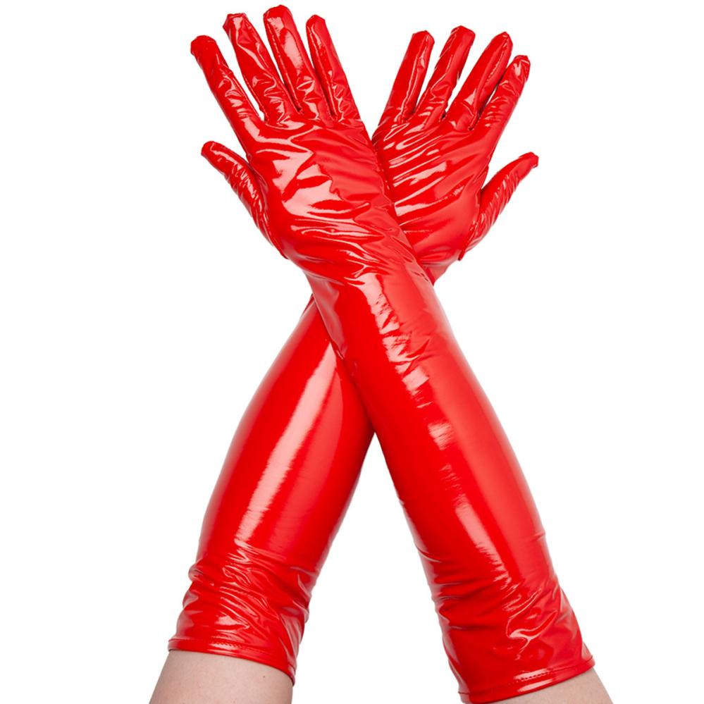 Pitkät Nahkahanskat Punainen sisältää yhden parin pitkiä hanskoja punaisesta keinonahasta.