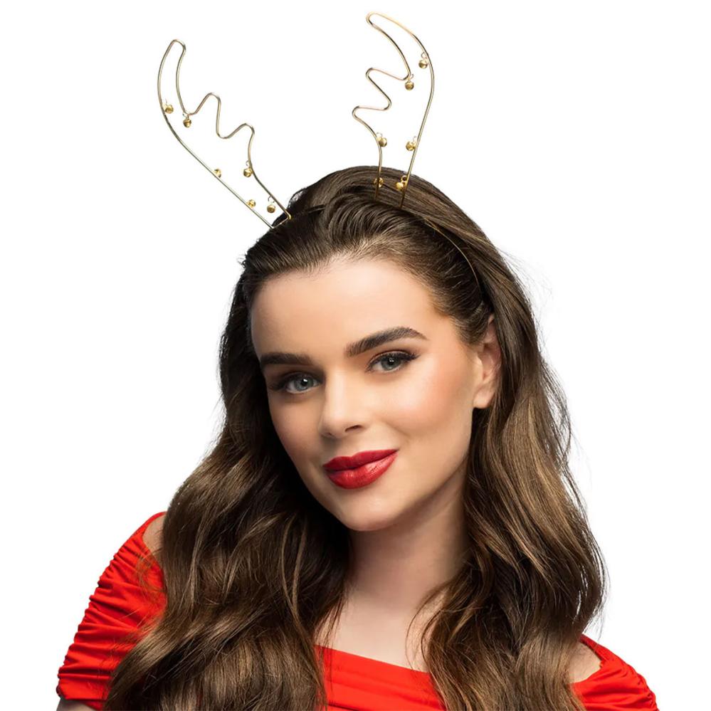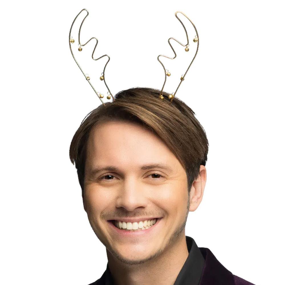 Poronsarvi Joulupanta Kelloilla Kulta sisältää kultaisen diadeemin, jossa on poronsarvet ja kellot.