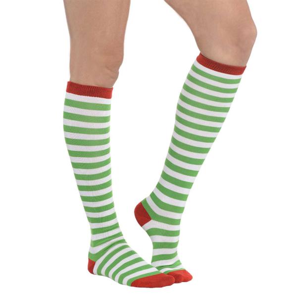 Tyylikkäät polvisukat, joissa on valkoiset ja vihreät raidat, tekevät naamioituneesta asustasi helposti täydellisen ja pitävät sinut lämpimänä ja mukavana koko illan. Nämä raidalliset naamioidut polvisukat ovat erinomainen valinta sinulle, joka etsii sopivia asusteita esimerkiksi joulupukkiasuun tai vastaavaan.