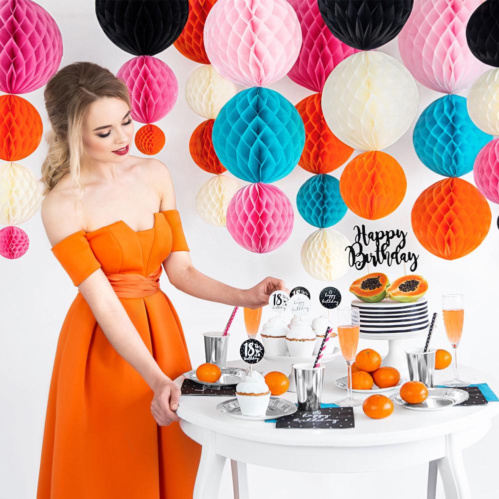 Kun valkoinen riippuva koriste on paperinen hunajakennokoriste, se antaa huoneeseen pehmeän ilmeen. Tämä koriste, joka muistuttaa paperipalloa, näyttää kauniilta, kun se leijailee katosta juhlissa.