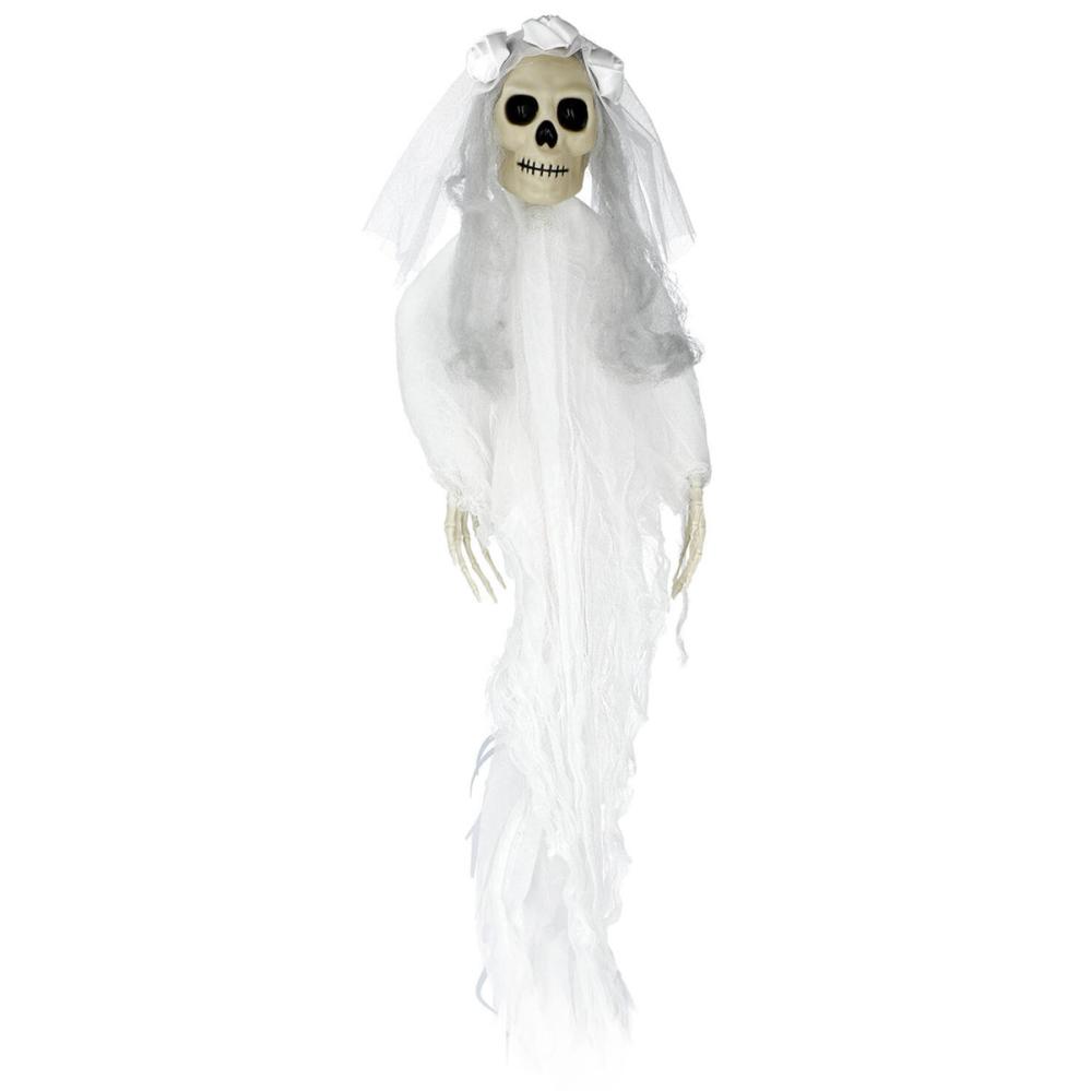 Riippuva Luuranko Morsian Koriste sisältää riippuvan koristeen, joka on muodoltaan luuranko pitkällä valkoisella häämekolla, rihmamaisilla mustilla hiuksilla ja kolmella valkoisella ruusulla päässään. Koristeessa on taivuteltavat käsivarret, ja se on helppo ripustaa mukana tulevalla kätevällä ripustuslenkillä.