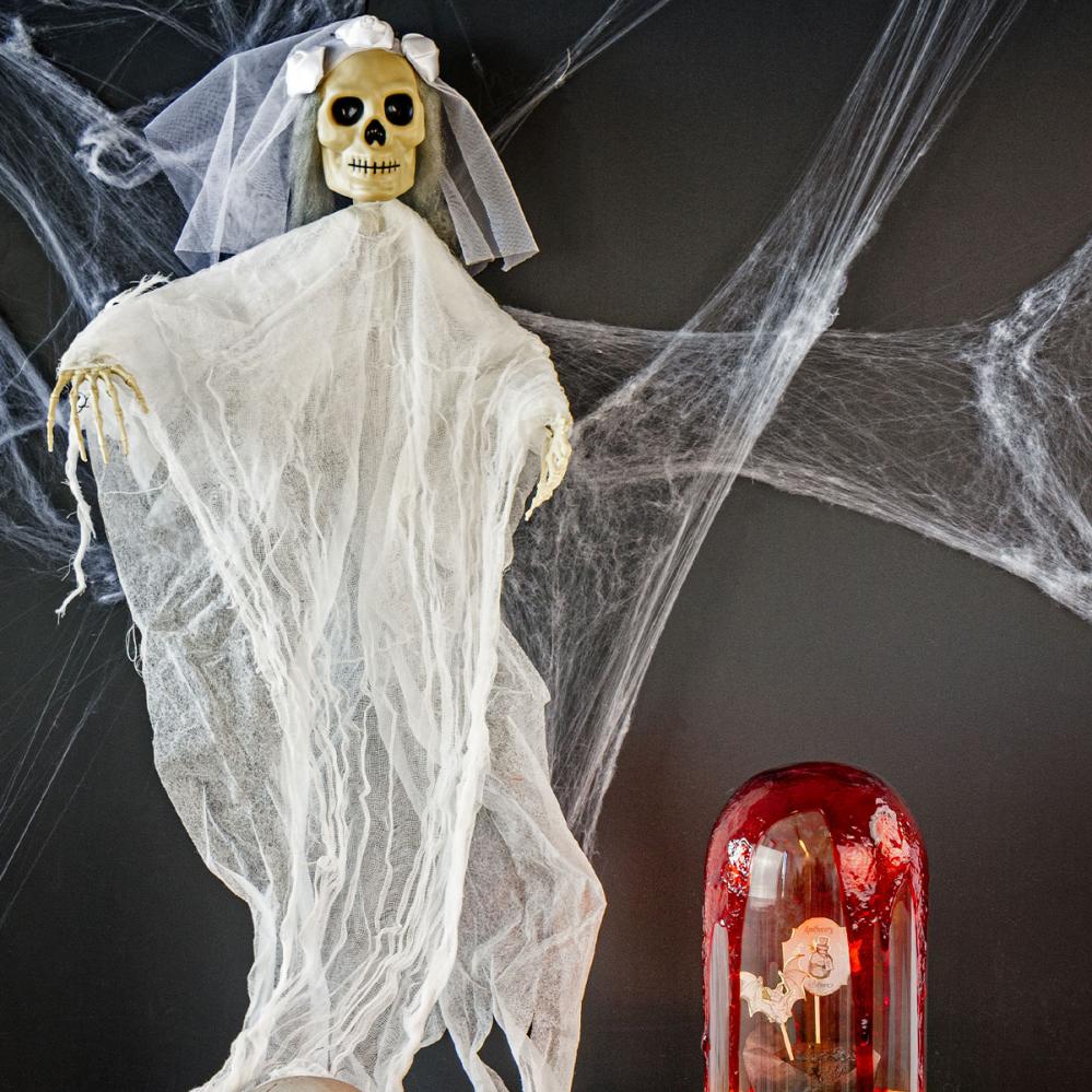 Luo tunnelmaa riippuvalla Halloween-luurankokoristeella, joka taatusti kerää katseet. Täydellinen Halloween-koristeeksi tai halloweenjuhlan koristeluun sen karmivan mekon ja taivuteltavien käsivarsien ansiosta, jotka mahdollistavat pelottavat poseeraukset.