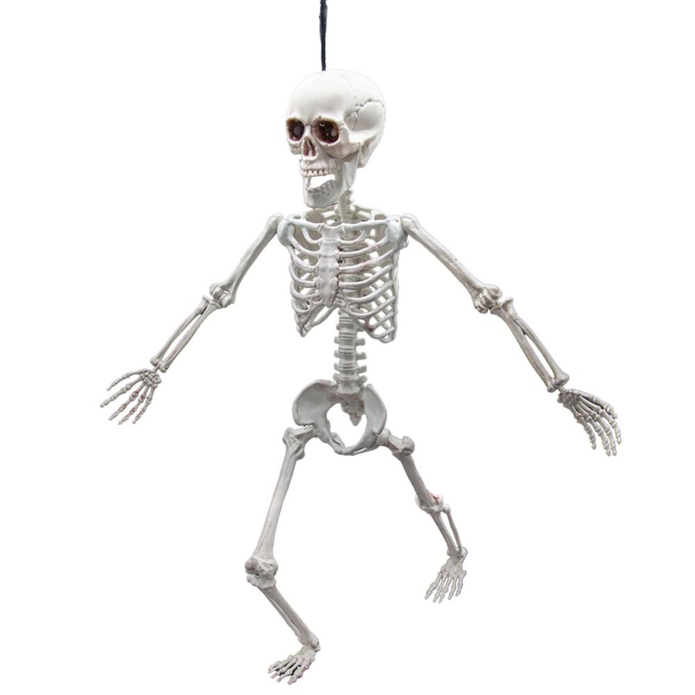 Tämä riippuva luuranko on täydellinen Halloween-koristeluun. Taivuteltavien nivelten ja säädettävien yksityiskohtien ansiosta sinulla on vapaus luoda todella pelottava hahmo, jonka voit helposti sijoittaa sinne, missä se näkyy parhaiten.