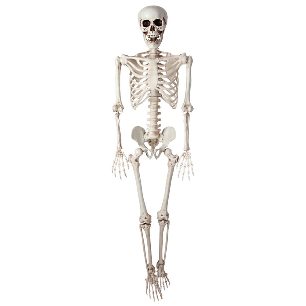 Riippuva Taivutettava Luuranko Rekvisiitta 90 cm sisältää suuren luurangon, jonka ripustat helposti sen päähän kiinnitetyn narun avulla. Luurangossa on säädettävät käsivarret, jalat, kädet, jalkaterät, pää sekä leuka, jotta voit muotoilla sen mielesi mukaan.