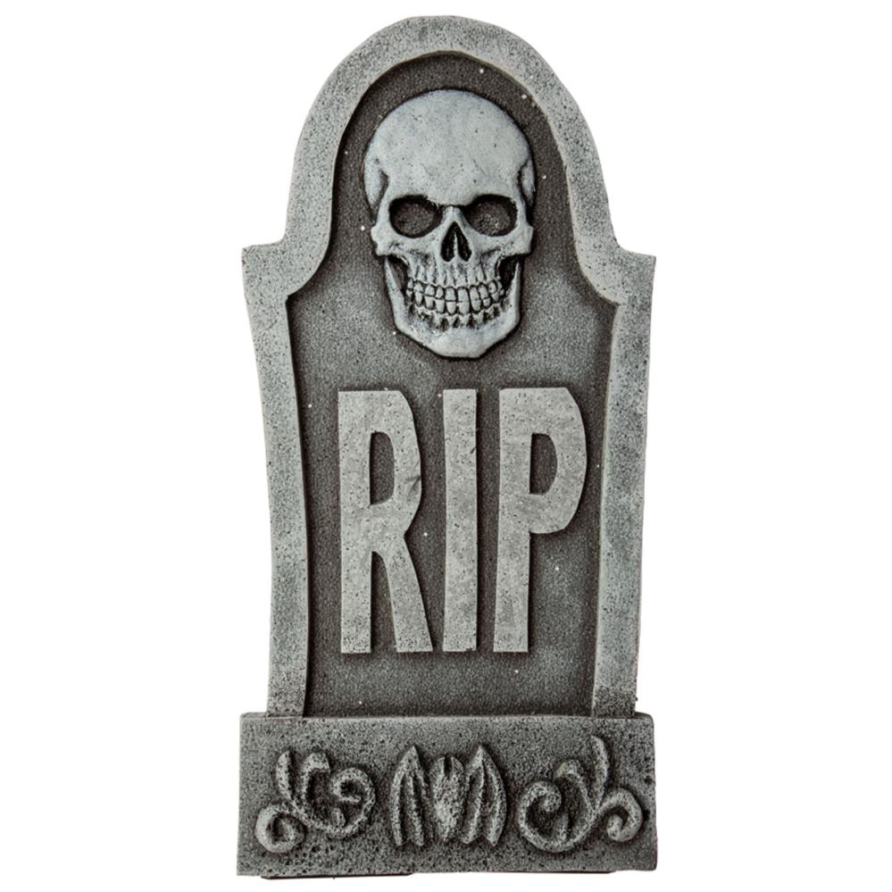 RIP Hautakivi 60 cm sisältää koristeen, joka esittää mustavalkoista hautakiveä, jossa on teksti "RIP" ja kallokuvio.