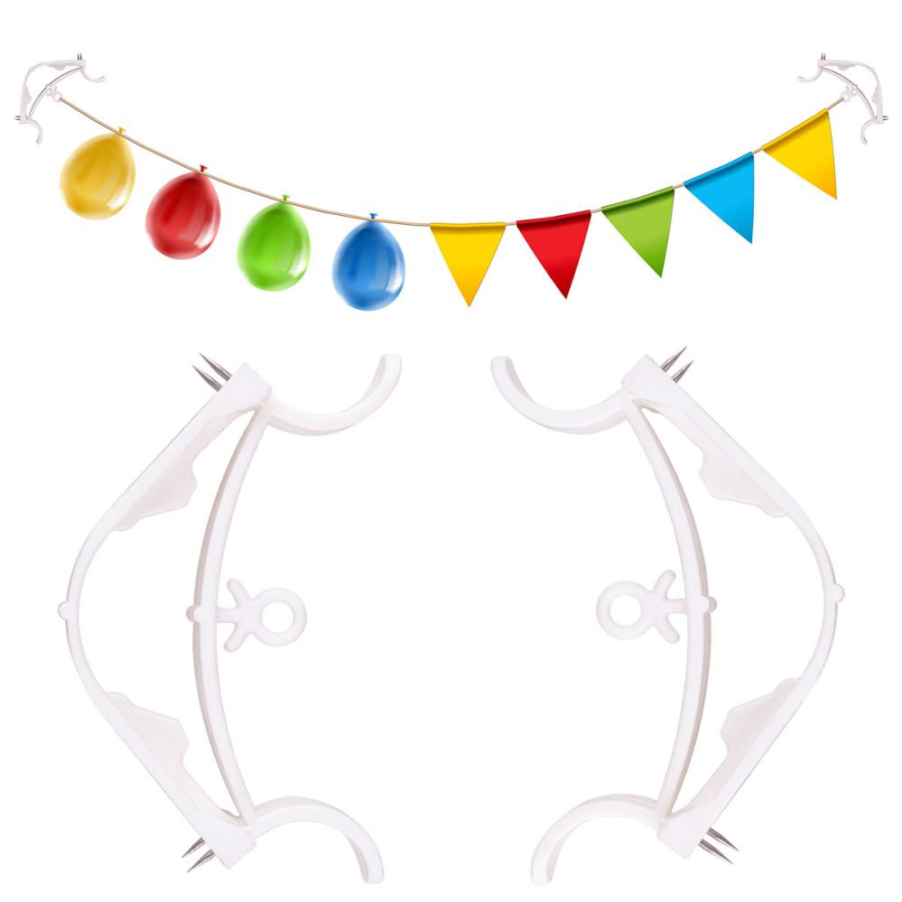 Ripustimet Ilmapallonauhat 2 kpl sisältää kaksi valkoista kulmaklipsua, joilla kiinnität helposti tavallisen köynnöksen tai ilmapalloköynnöksen.