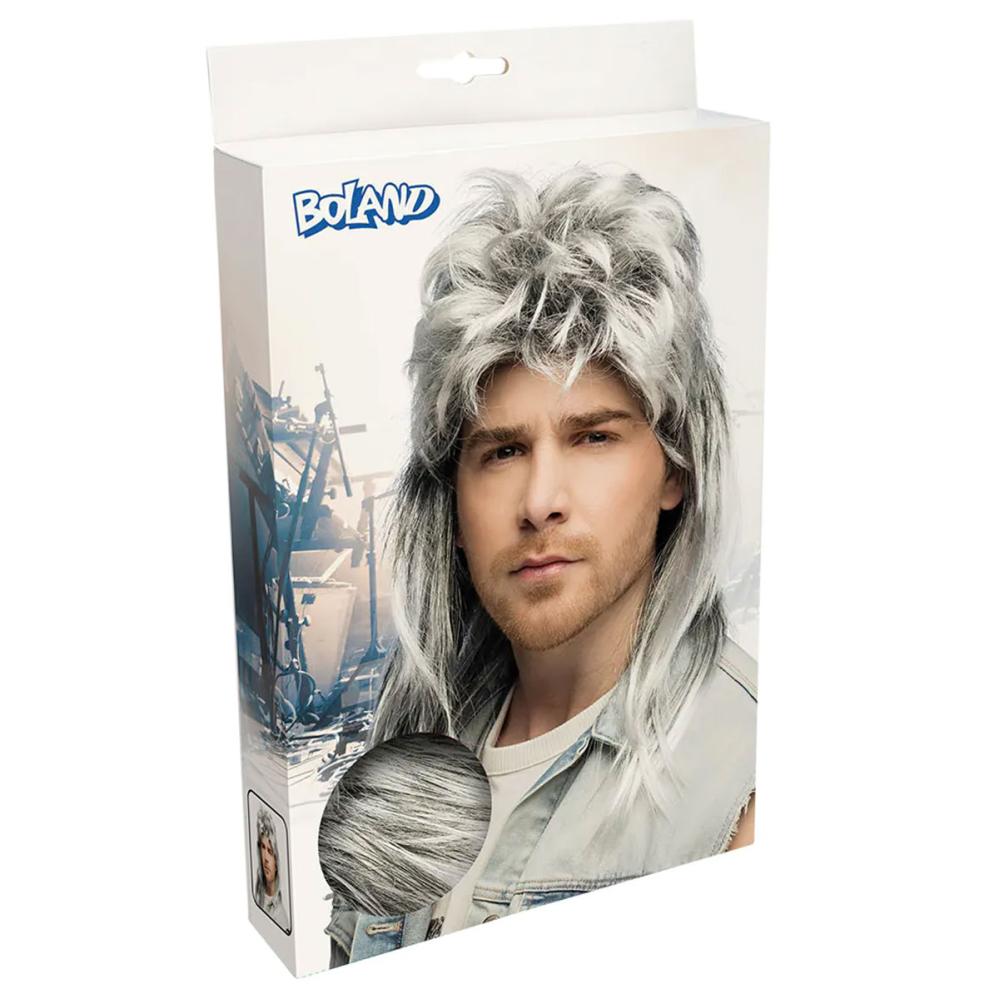 Tämä rockperuukki laskeutuu pehmeästi ja siinä on luonnollinen kiilto. Naamiaisissa, joiden teemana on rock, antaa harmaa, pitkä ja otsatukallinen peruukki aidon ilmeen. Se sopii rocknaamiaisiin ja esiintymislavoille ja sitä on helppo muotoilla.