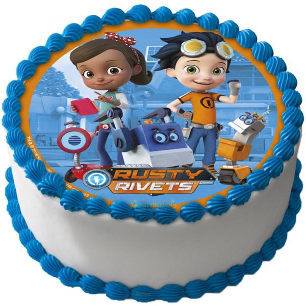 Nyt Rusty Riverts itse voi vastata kakun koristeluista! Tämän viileän Rusty Riverts -aiheisen kakkukuvan avulla on todella helppoa hemmotella juhlavieraitasi supertyylikkäällä Rusty Riverts -kakulla, joka ei unohdu. Täydellinen kakunpäällinen kaikkiin Rusty Rivets -juhliin.