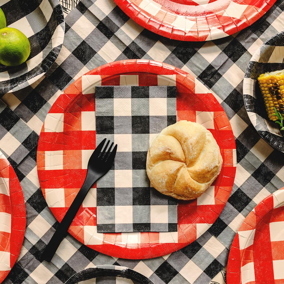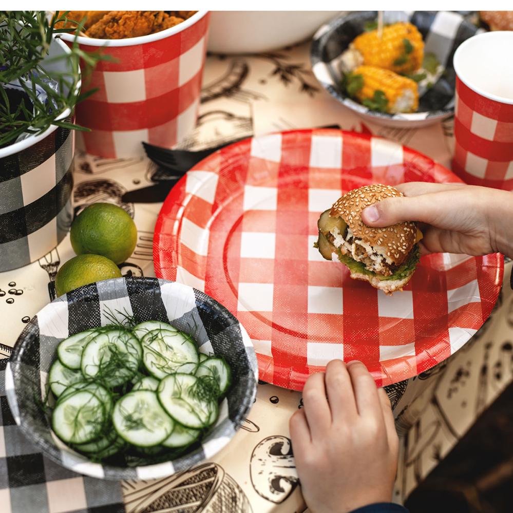 Tietoa tuotteesta Ruudulliset Pahvilautaset Punainen 27 cm 6 kpl: