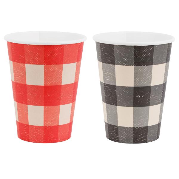 Tietoa tuotteesta Ruudulliset Pahvimukit Musta ja Punainen 6 kpl: