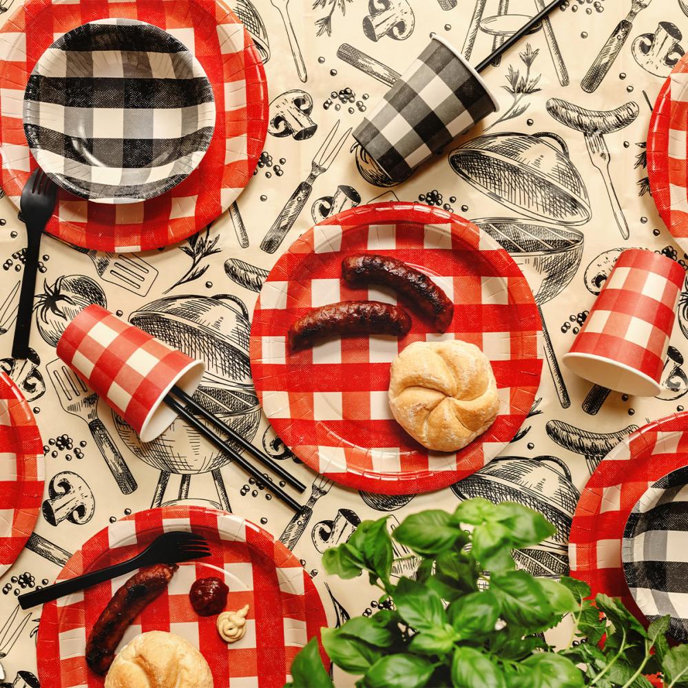 - Kertakäyttökulhot ruudullisella kuviolla