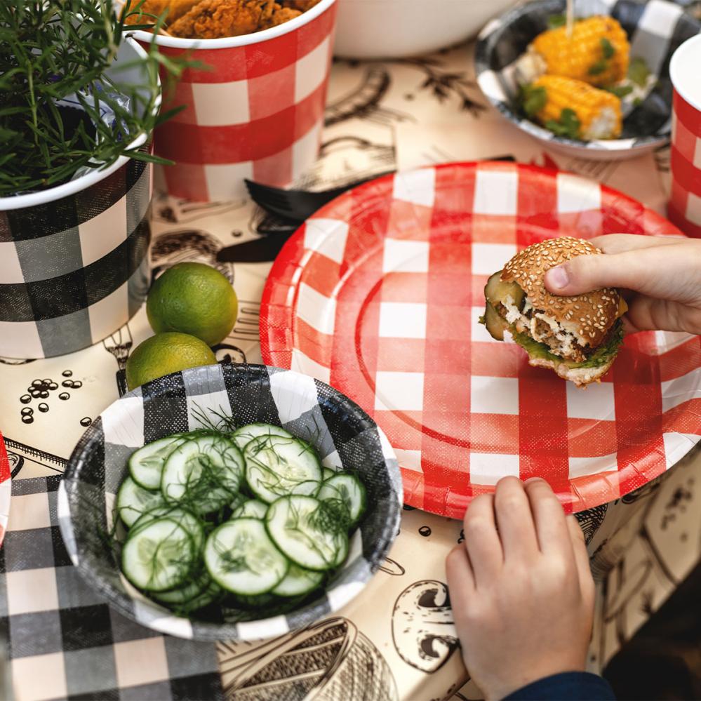 Kun juhlien teemana on grillaus, nämä syvät paperikulhot ovat täydellisiä käytännöllisiä tarvikkeita. Paperikulhot kesäjuhliin, syntymäpäiville tai grillijuhliin helpottavat salaattien ja muiden lisukkeiden tarjoilua ilman dramatiikkaa, mikä on mukavaa, kun joku on jo pudottanut perunasalaatin syliinsä.