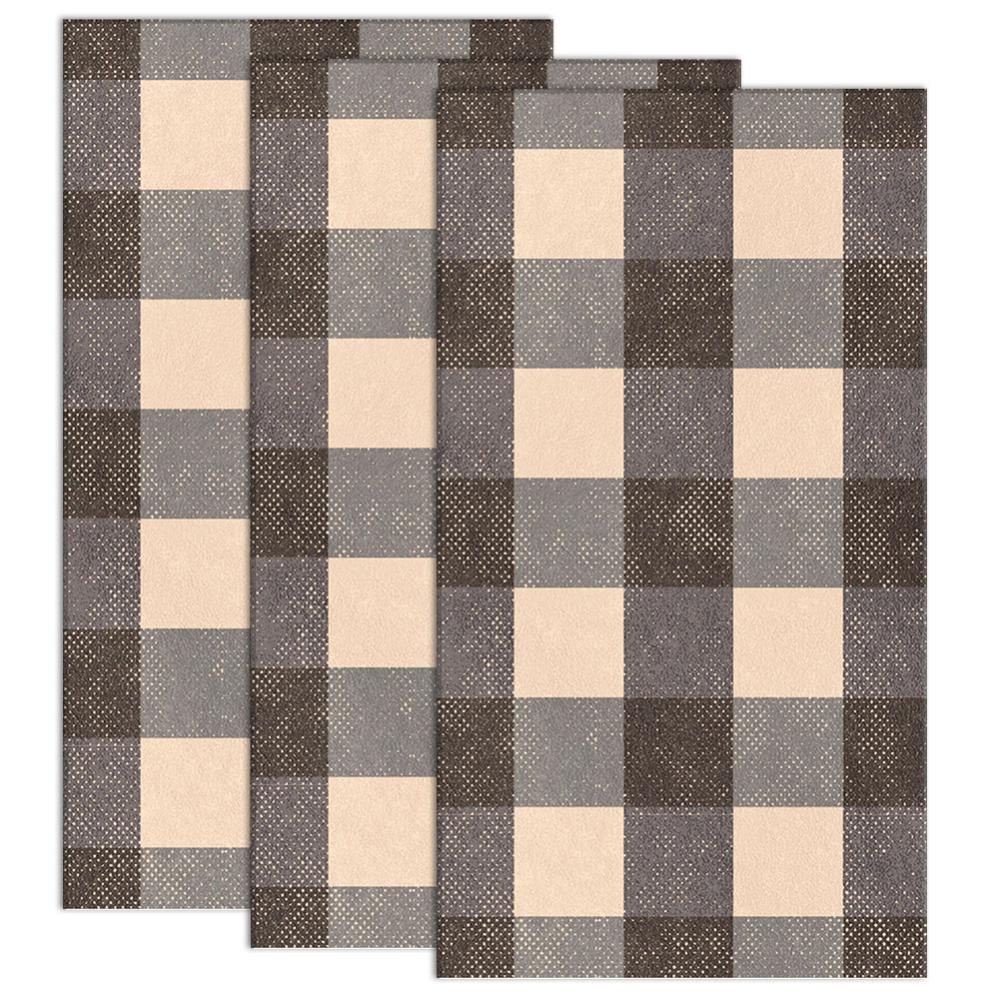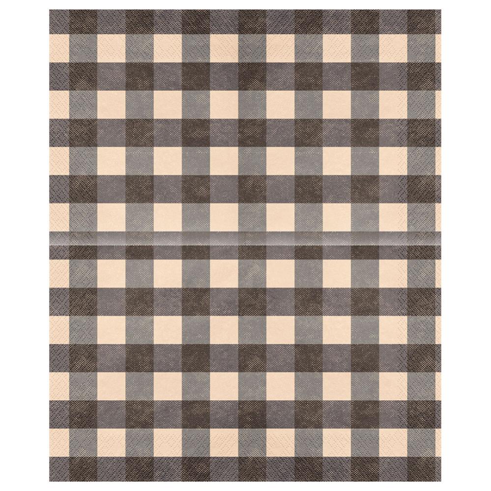 Ruudulliset Paperiservetit 20 kpl sisältää kaksikymmentä suorakulmaista kaksikerroksista kertakäyttöservettiä, joissa on ruudullinen kuvio väreissä musta, harmaa ja beige.