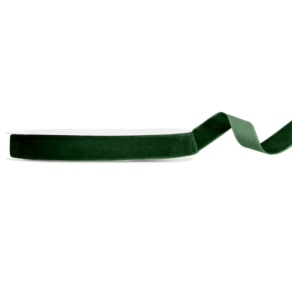 Samettinauha Pullonvihreä 15 mm sisältää pullonvihreän samettinauhan rullassa.
