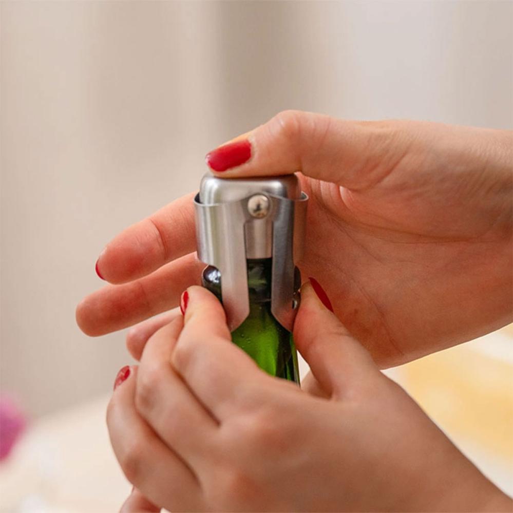 Säilytä juoma raikkaana tällä samppanjakorkilla, joka säilyttää kuplat. Tässä pullokorkissa on älykäs lukitustoiminto, joka estää vuotamisen. Täydellinen myös viinikorkkina avattujen pullojen tiivistämiseen ja maun säilyttämiseen pidempään.