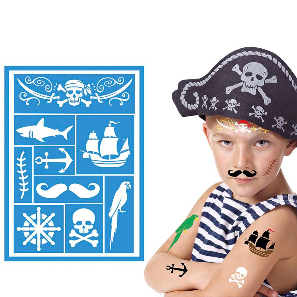Luo jännittävä merirosvojuhla näillä sapluunoilla, joissa on kuvioina merirosvosymboli, hai, papukaija, ankkuri ja paljon muuta. Täydellinen koristeluun tai hauskoihin aktiviteetteihin, jotka päästävät mielikuvituksen purjehtimaan vapaasti.