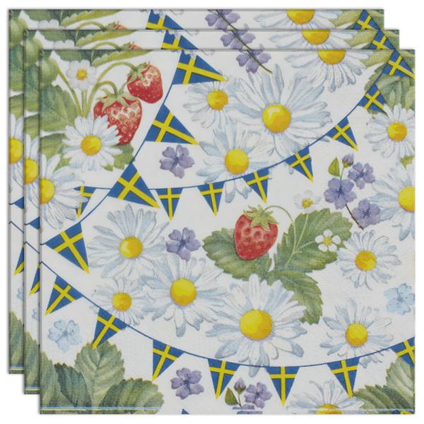 Nämä servetit ovat täydellinen viimeinen silaus kattaukseen ja koristeluun ylioppilasjuhlissa tai juhannusjuhlissa, ja ylioppilasjuhlien tai juhannuksen servetteinä ne saavat mielellään varastaa huomion. Täydelliset servetit ylioppilasjuhliin, kansallispäivään tai juhannukseen, ja ne tuovat juhliin extraa kesäistä tunnelmaa.