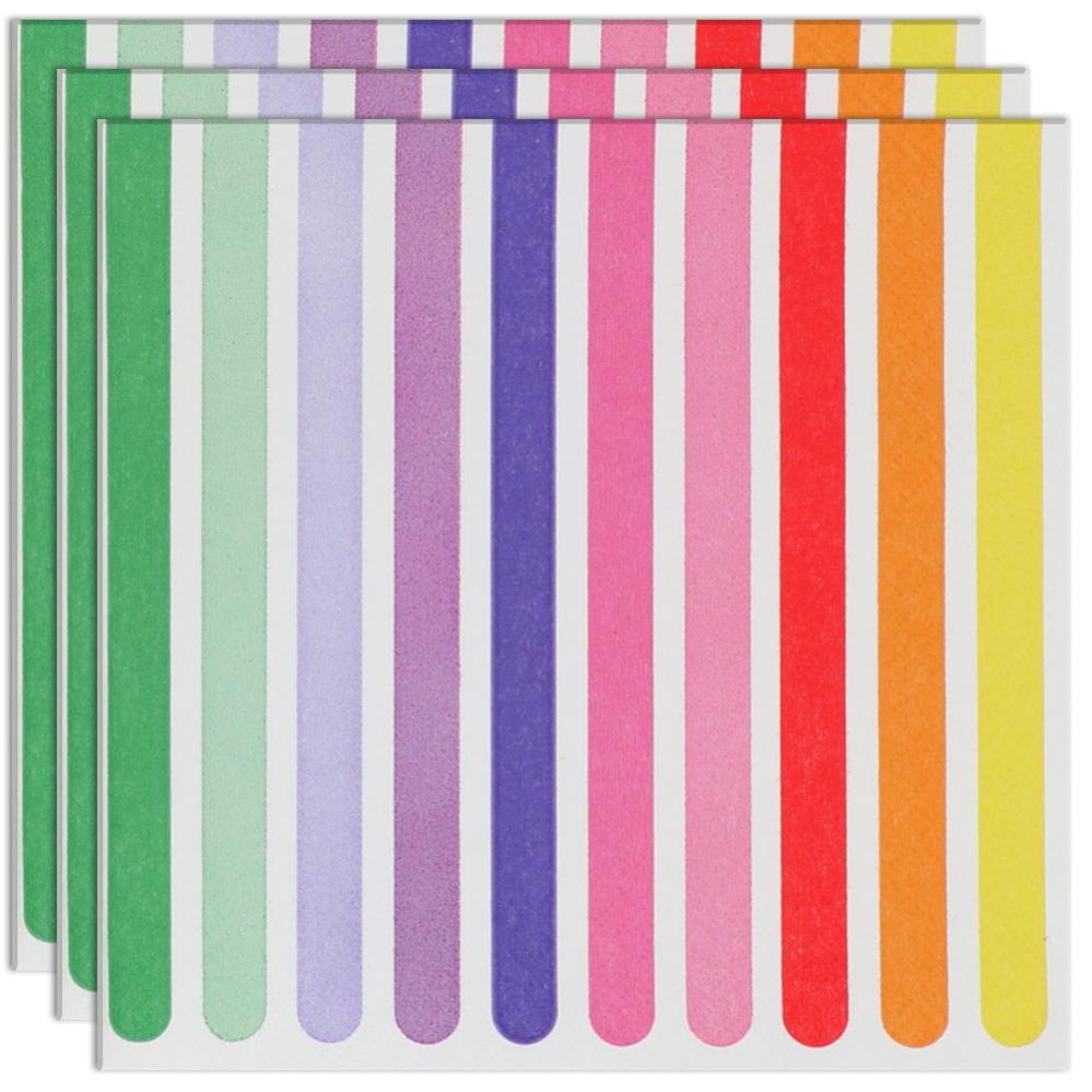 Servetit Stripetastic 20 kpl sisältää kaksikymmentä kolmikerroksista paperiservettiä, joissa on värikäs raidallinen kuvio kymmenessä eri värissä.