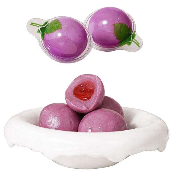 Tämä viinirypälemakeinen on koostumukseltaan pehmeä ja maultaan mieto, hedelmäinen. Viinirypäleen maku erottuu juhla- ja kahvipöydän karkkikulhossa. Tätä Silmäkarkki Viinirypäle 10g -makeista voi käyttää myös pienenä pöytäkoristeena.