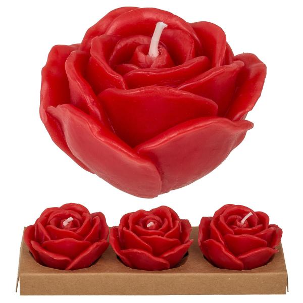 Info Steariinikynttilä Punaiset Ruusut 3-kpl: