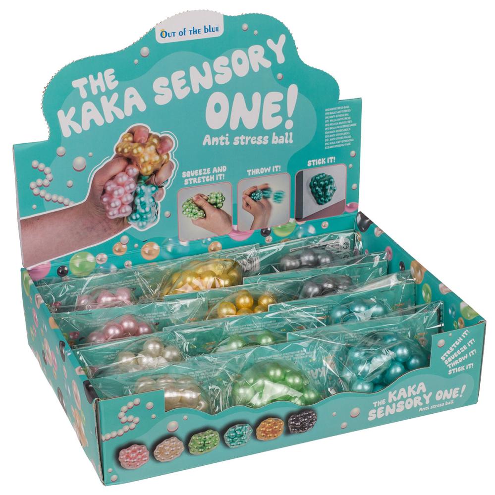 Sticky Squishy Stressipallo Helmillä koostuu puristelupallosta, joka on täytetty suurilla, pehmeillä helmillä, jotka antavat sille ainutlaatuisen tekstuurin ja ylimääräisen sensorisen kokemuksen muovailtaessa. Pallossa on myös tahmea pinta, ja kun se heitetään sileää pintaa vasten, se tarttuu kiinni ja liukuu hitaasti alas. Sitä on saatavana kuudessa eri värissä.