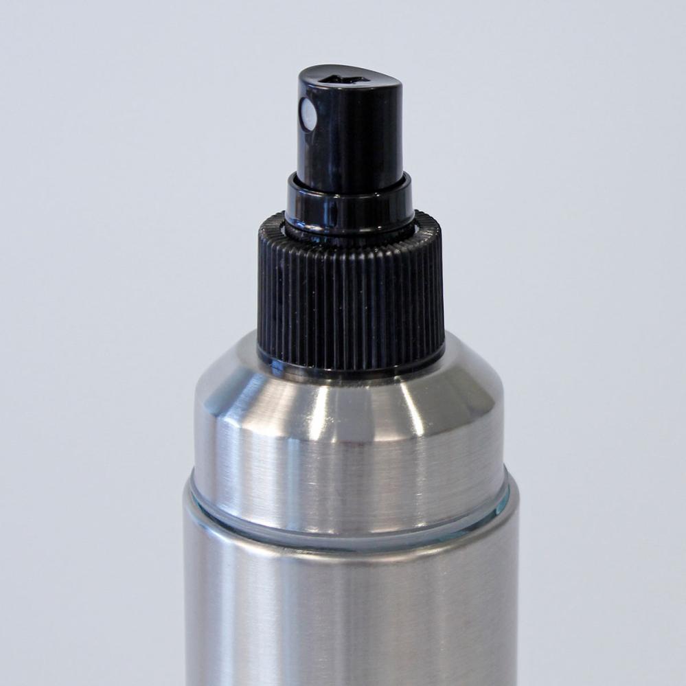 Suihkepullo Öljylle/Etikalle 19 cl koostuu tyylikkäästä hopeanvärisestä metallipullosta, jossa on musta suihkekorkki ja suojakansi. Pullon alaosa on valmistettu läpinäkyvästä lasista, joten sisältö on helppo nähdä.