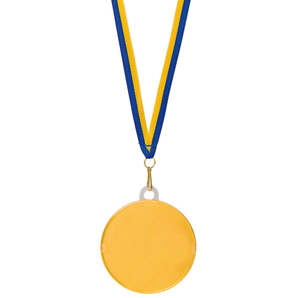 Tämä suklaamitali on maukas tapa juhlia suuria ja pieniä voittoja. Valmistettu sileästä maitosuklaasta ja kääritty kultaväriseen folioon, mikä antaa sille aidon jalometallin tunnun. Sinikeltainen nauha mahdollistaa mitalin ripustamisen kaulaan ennen nauttimista.