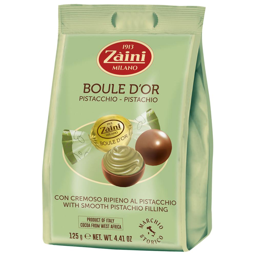 Suklaapraliinit Pistaasi 125g on pussi, jossa on 125 grammaa maitosuklaapraliineja, jotka on täytetty pistaasitäytteellä.