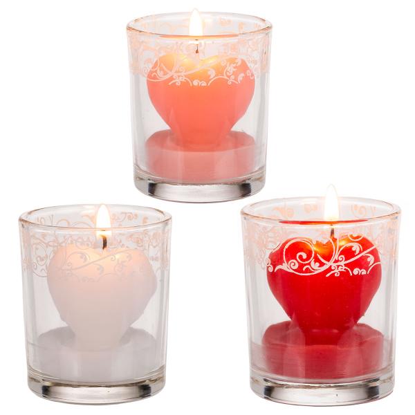 Sydänkynttilä Koristeellisessa Lasissa sisältää sydämenmuotoisen kynttilän lasissa, jossa on ylhäällä valkoinen, koristeellinen kuviointi. Kynttilä on saatavilla punaisena, vaaleanpunaisena ja valkoisena, mutta sitä myydään lajittelemattomana ja yksittäin, joten on yllätys, minkä värin saat.