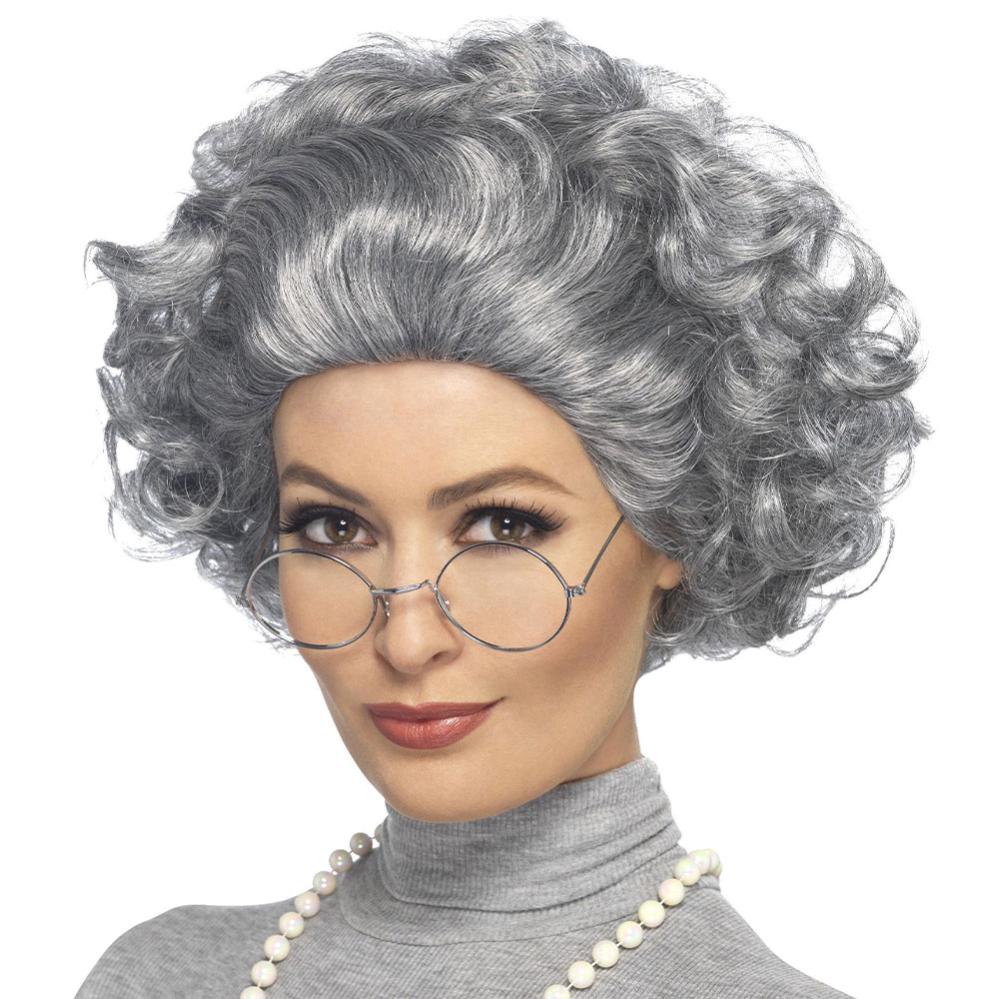 Täti Peruukkisetti Harmaa on täydellinen setti humoristiseen täti-naamiaisasuun, mukana täti-peruukki, jossa on kiharat harmaat hiukset. Silmälasit ja helminauha viimeistelevät lookin unohtumatonta roolihahmoa varten.