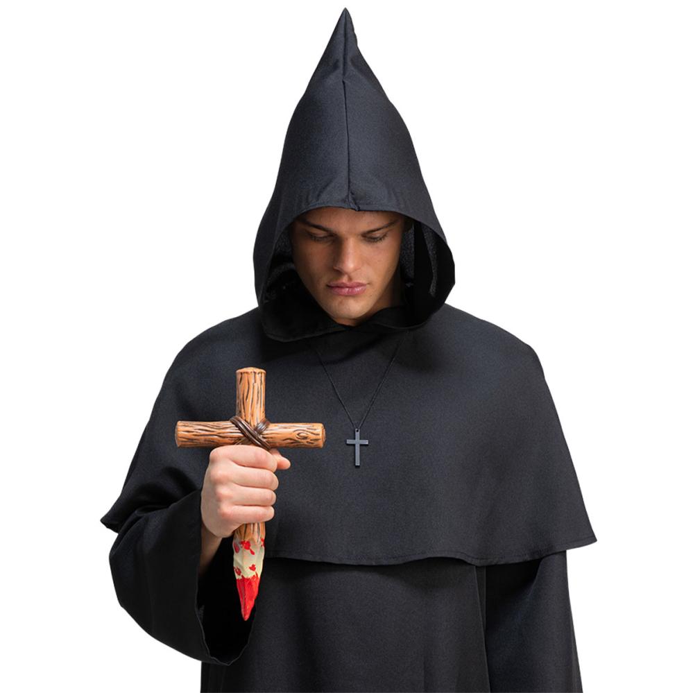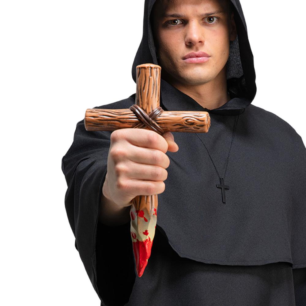 Tämä Halloween-vampyyriristi on verinen risti, jossa on puuta muistuttava ulkoasu ja kauhistuttava yksityiskohta kärjessä. Täydellinen Halloween-pöytäkoristeeksi tai karmivaksi naamiaisasusteeksi vampyyriteemaan.