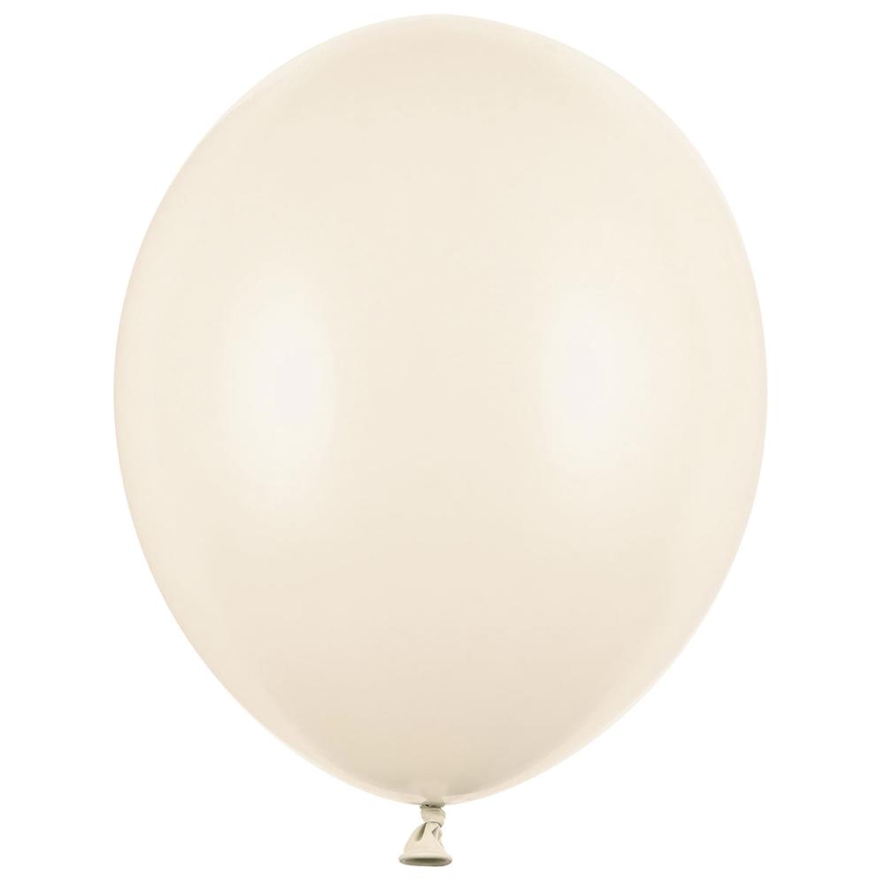 Vahvat Ilmapallot Vaalea Nude Pastelli 27 cm 100-pakkaus sisältää 100 kestävää lateksi-ilmapalloa vaalean nuden pastellisävyssä.
